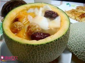 3. 哈密瓜炖肉:将哈密瓜切成块状,和猪肉或者鸡肉一起炖煮,肉质鲜嫩,哈密瓜的甜味也能中和肉的油腻感。